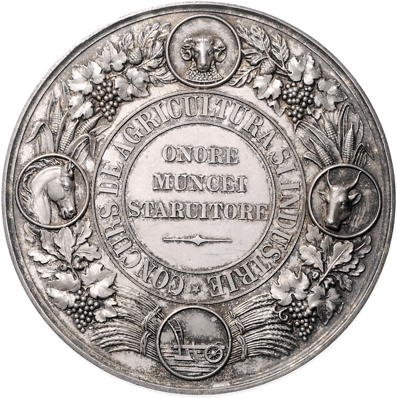 Carol I. 1866-1914. Silbermedaille o.J. (v. Kullrich) Prämie der Landwirtschaft. Sommer K148. 59,1 mm, 80,69 g. vz