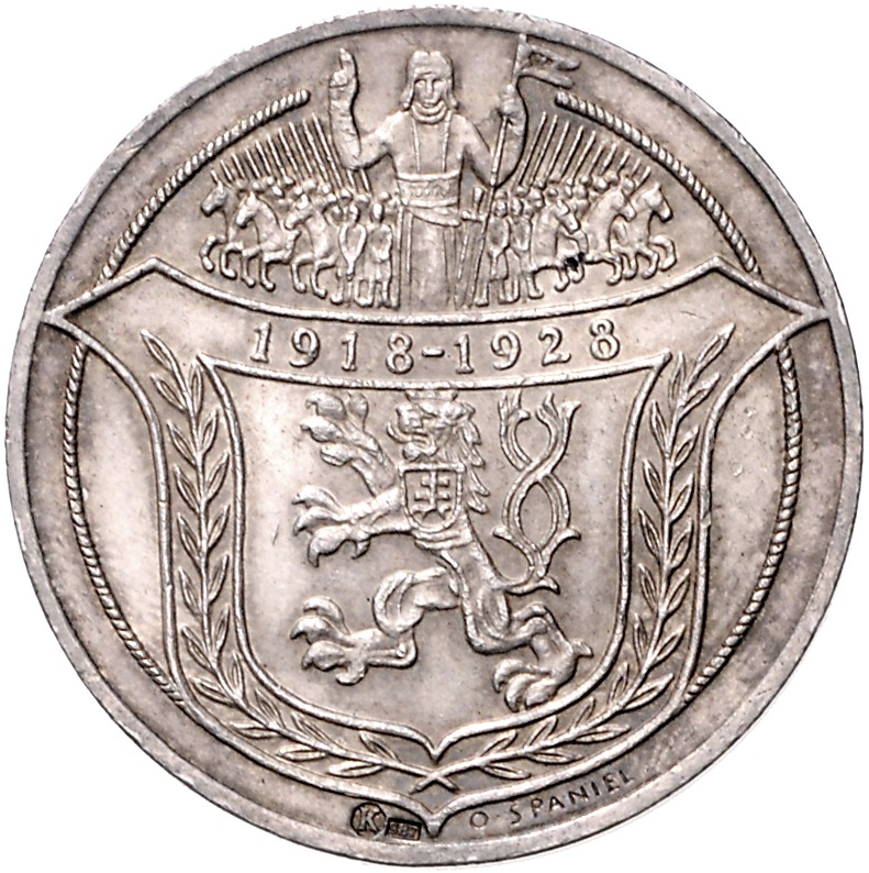 Erste Republik 1918-1938. Silbermedaille 1928 (v. Spaniel) auf 10 Jahre Republik, gepunzt: K 987. Müseler 69/4. 33,8 mm, 20,09 g. ss-vz