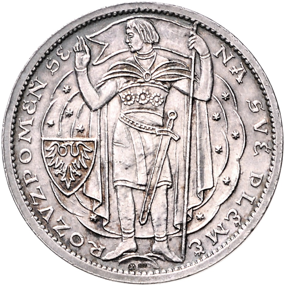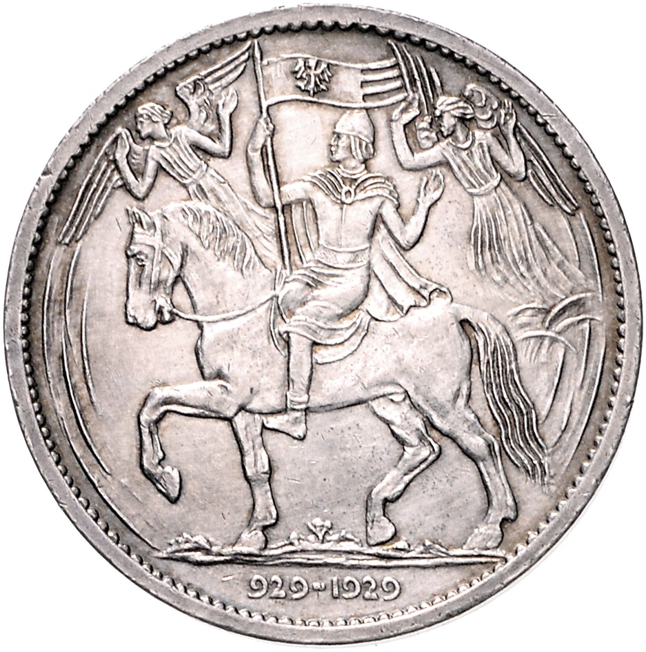 Erste Republik 1918-1938. Silbermedaille 1929 (unsign.) Zum 1000. Jahrestag der Christianisierung Böhmens, gepunzt: K 987. selten, nur 4237 Exemplare geprägt. 40,2 mm, 30,12 g. vz