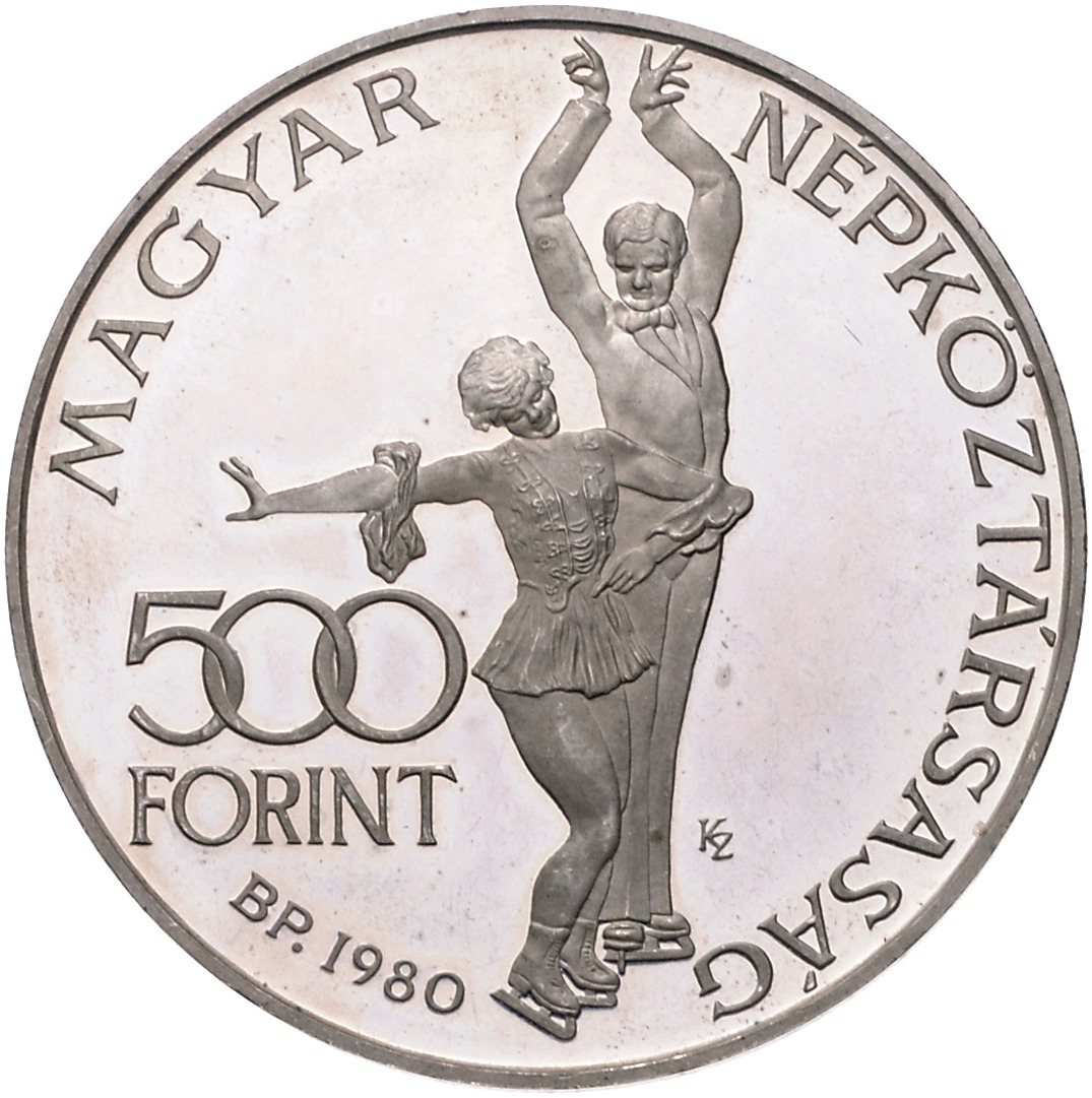 Volksrepublik 1949-1989. 500 Forint (Otszaz) 1980 BP auf die Olympischen Spiele in Lake Placid. K.M. 619. vz aus PP