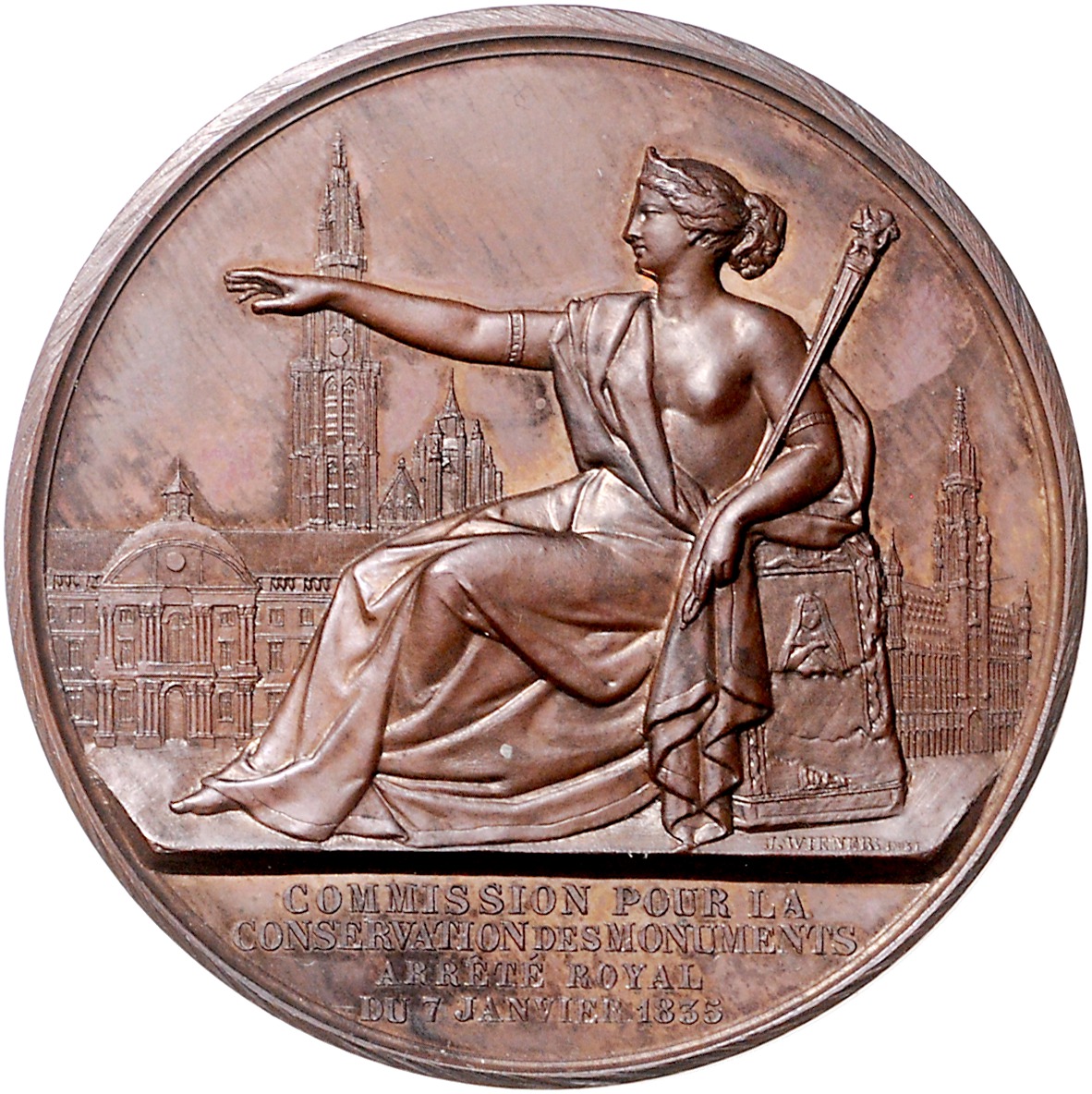 Bronzemedaille 1835 (v. Jacques Wiener) Prämie für Denkmalpflege, mit rückseitiger Verleihungsgravur. 50,9 mm, 48,06 g. vz