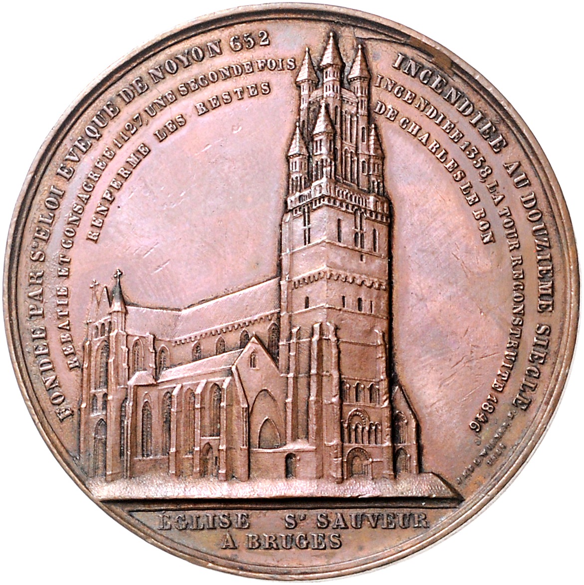 Bronzemedaille 1846 (v. Jaques Wiener) auf die Sankt-Salvator-Kathedrale in Brügge. Wurzbach 8809. kl. Kr. 50,3 mm, 49,00 g. f.vz