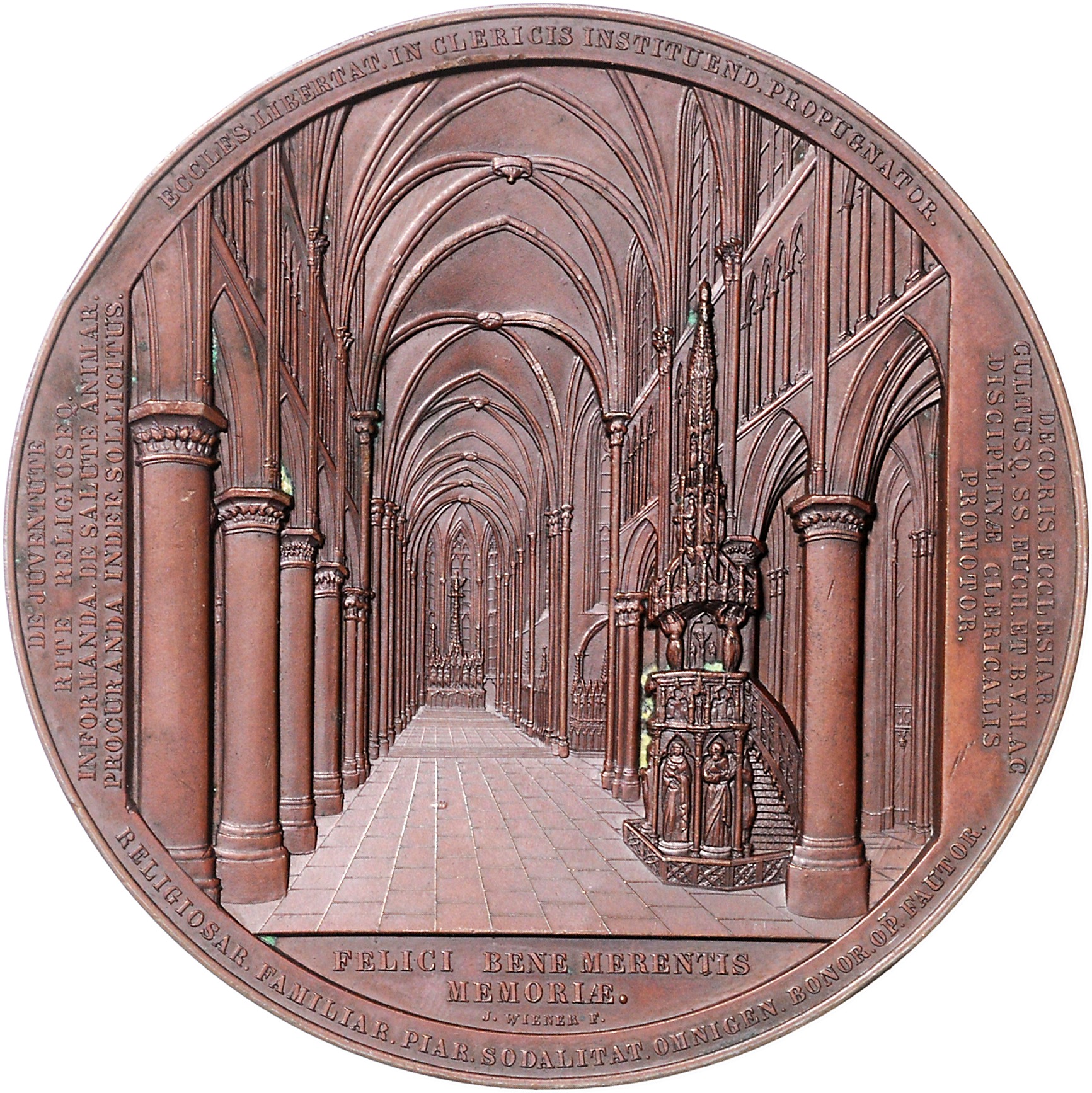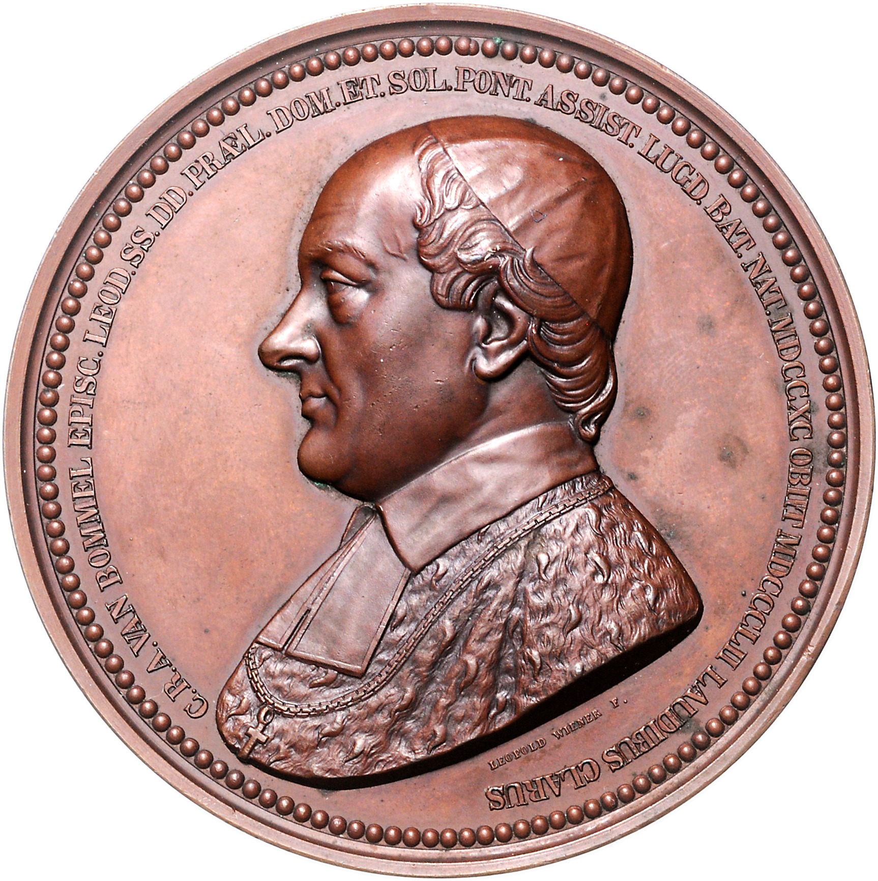 Bronzemedaille 1852 (v. Leopold u. Jacques Wiener) auf den Tod von Cornelis Richard Anton van Bommel, römisch-katholischer Bischof von Lüttich. Hoydonck 98. 74,5 mm, 185,47 g. vz