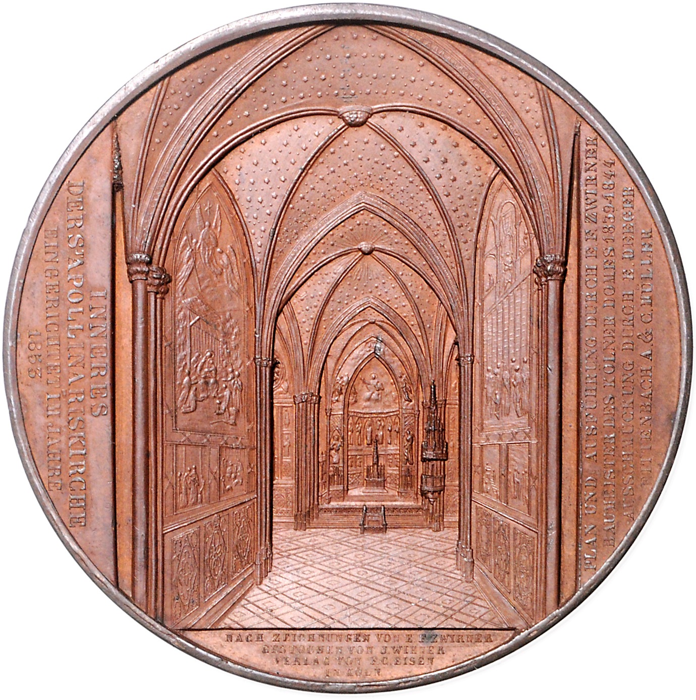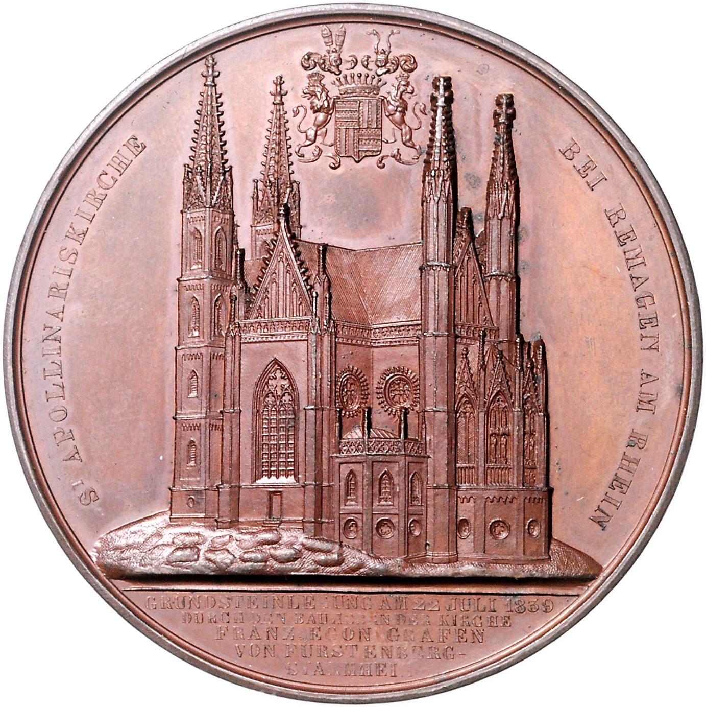 Bronzemedaille 1856 (v. Jacques Wiener) auf die Kirche St. Apollinaris bei Remagen am Rhein. Hoydonck 140. 59,5 mm, 84,00 g. vz-st