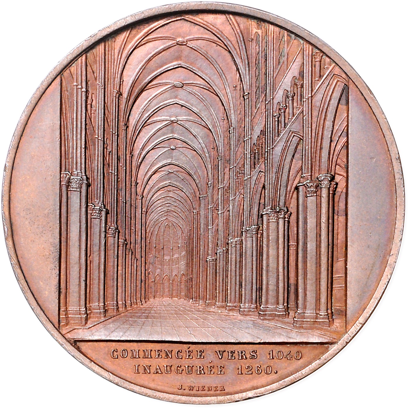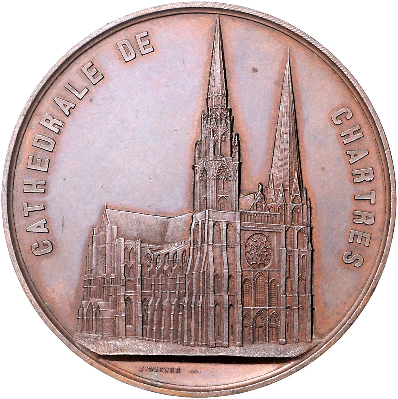 Bronzemedaille 1861 (v. Jacques Wiener) auf die Kathedrale von Chartres. Hoydonck 184. 59,6 mm, 89,55 g. vz
