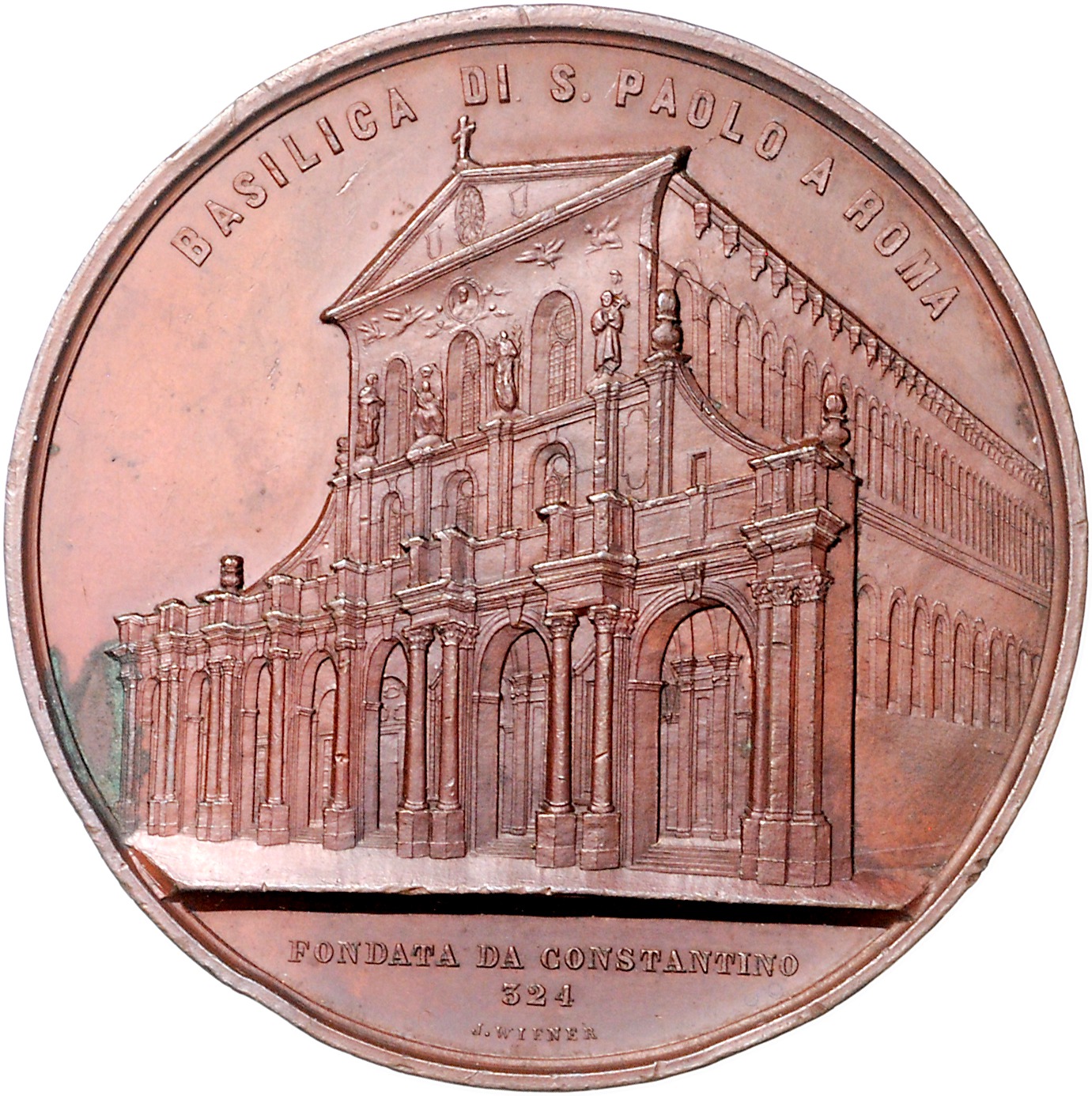 Bronzemedaille 1861 (v. Jacques Wiener) auf die Basilika St. Paul in Rom. Hoydonck 186. 59,3 mm, 83,13 g. vz