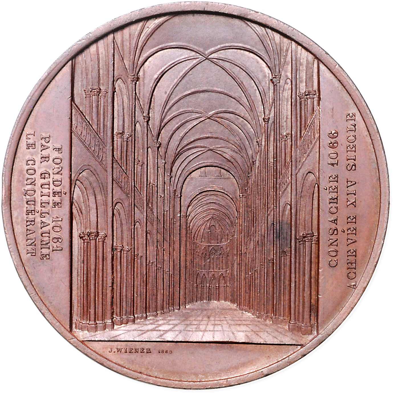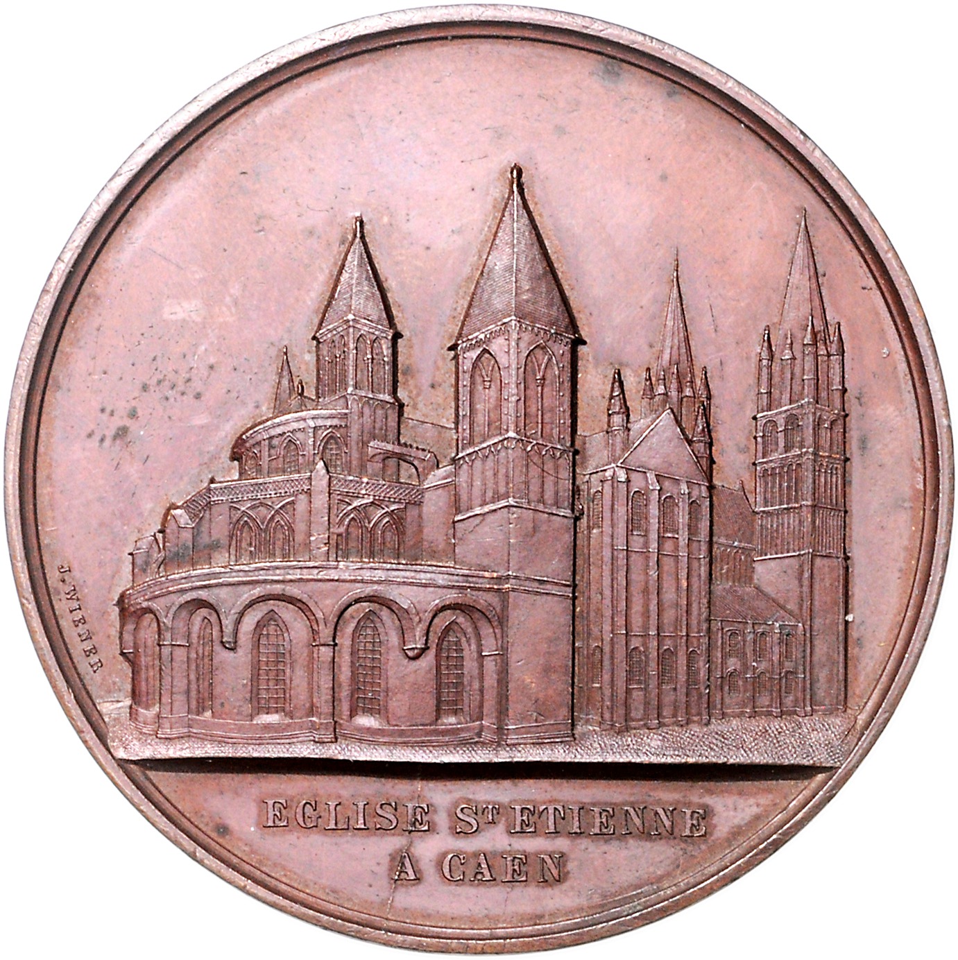 Bronzemedaille 1862 (v. Jacques Wiener) auf die Kirche St. Etienne in Caen. Hoydonck 191. 59,7 mm, 85,28 g. vz+