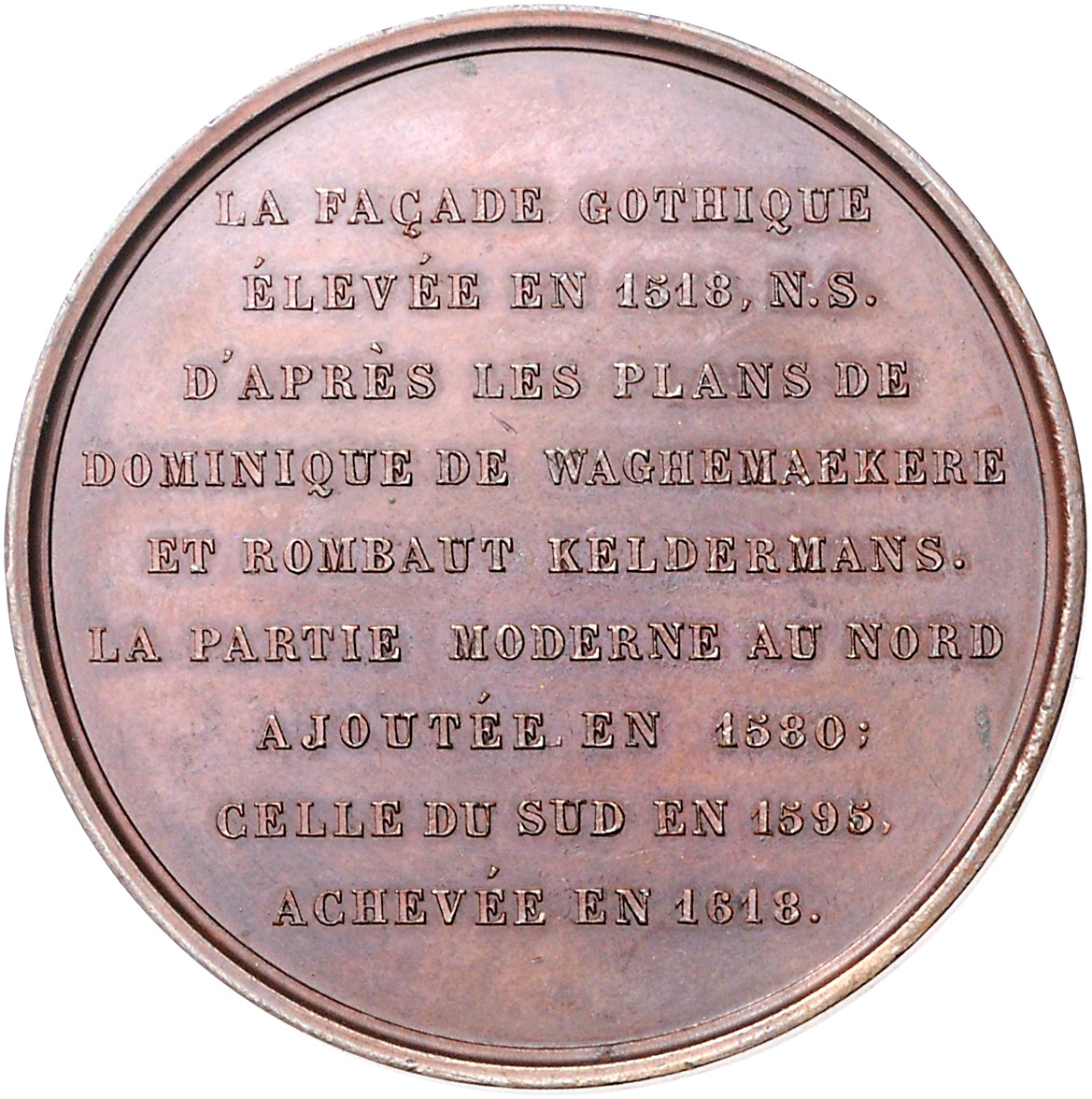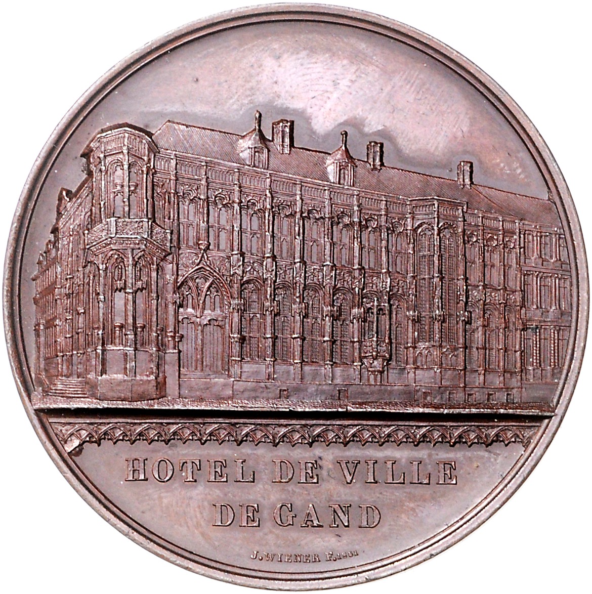 Bronzemedaille 1864 (v. Jacques Wiener) auf das Rathaus von Gent. Hoydonck 83. 50,3 mm, 49,24 g. vz+