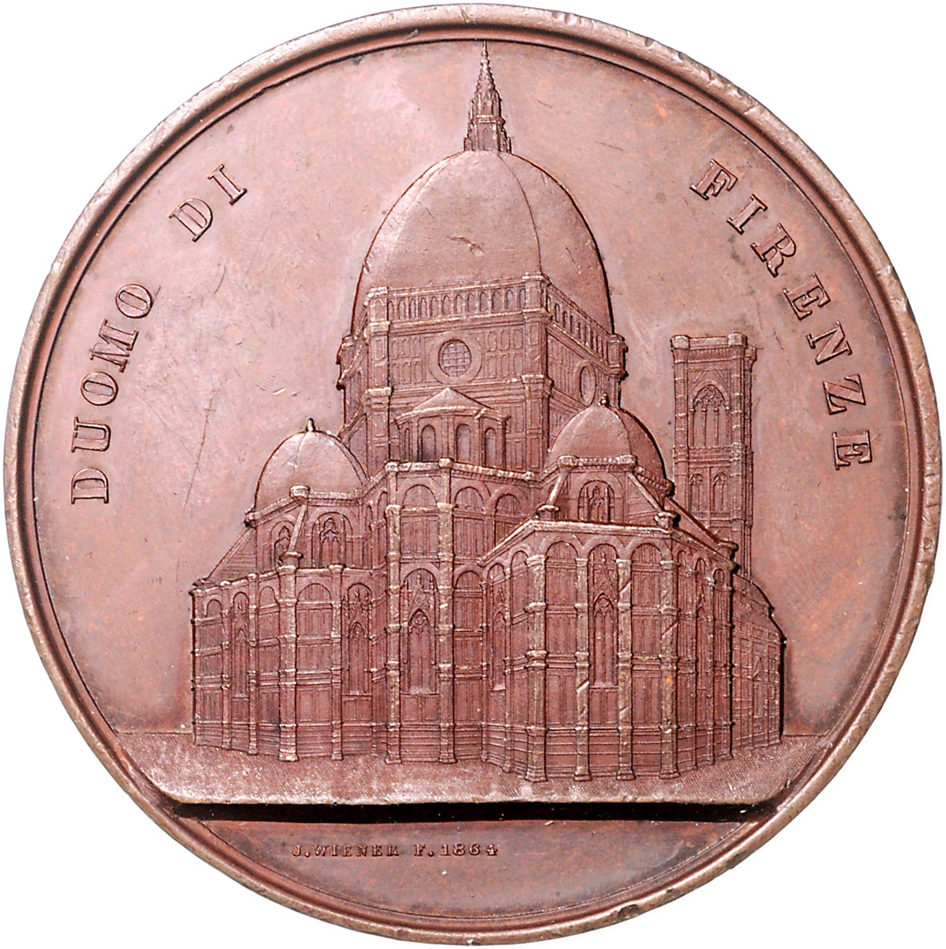 Bronzemedaille 1864 (v. Jacques Wiener) auf den Dom von Florenz. Hoydonck 205. 59,2 mm, 91,86 g. vz