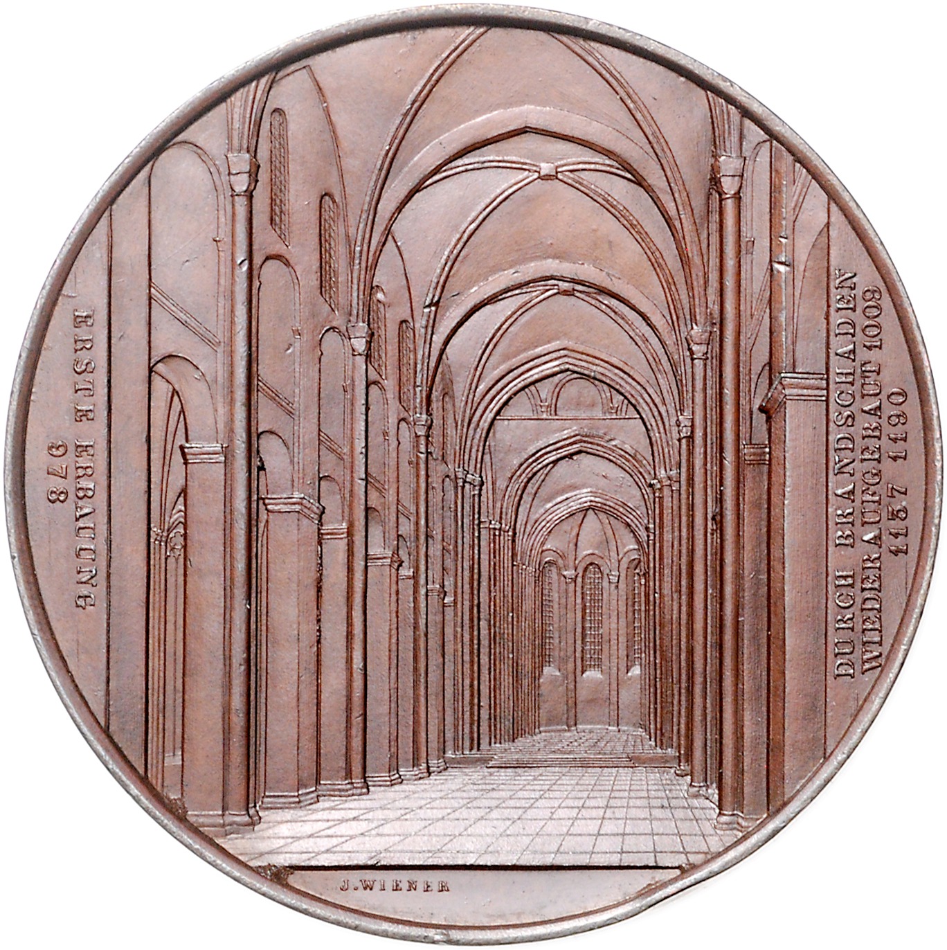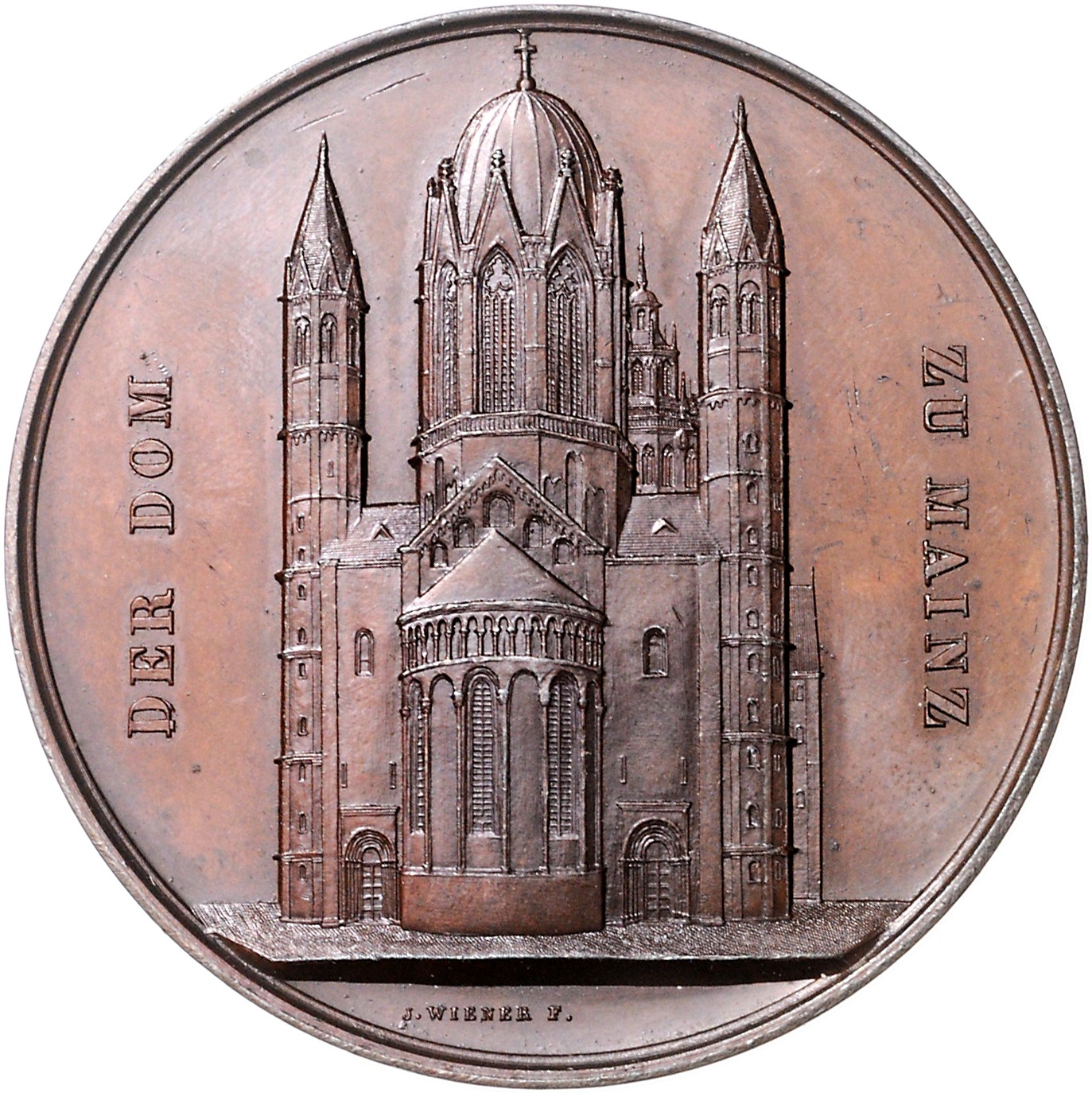Bronzemedaille o.J. (v. Jacques Wiener, 1866) auf den Dom zu Mainz. Hoydonck 216. 59,1 mm, 91,58 g. vz-st