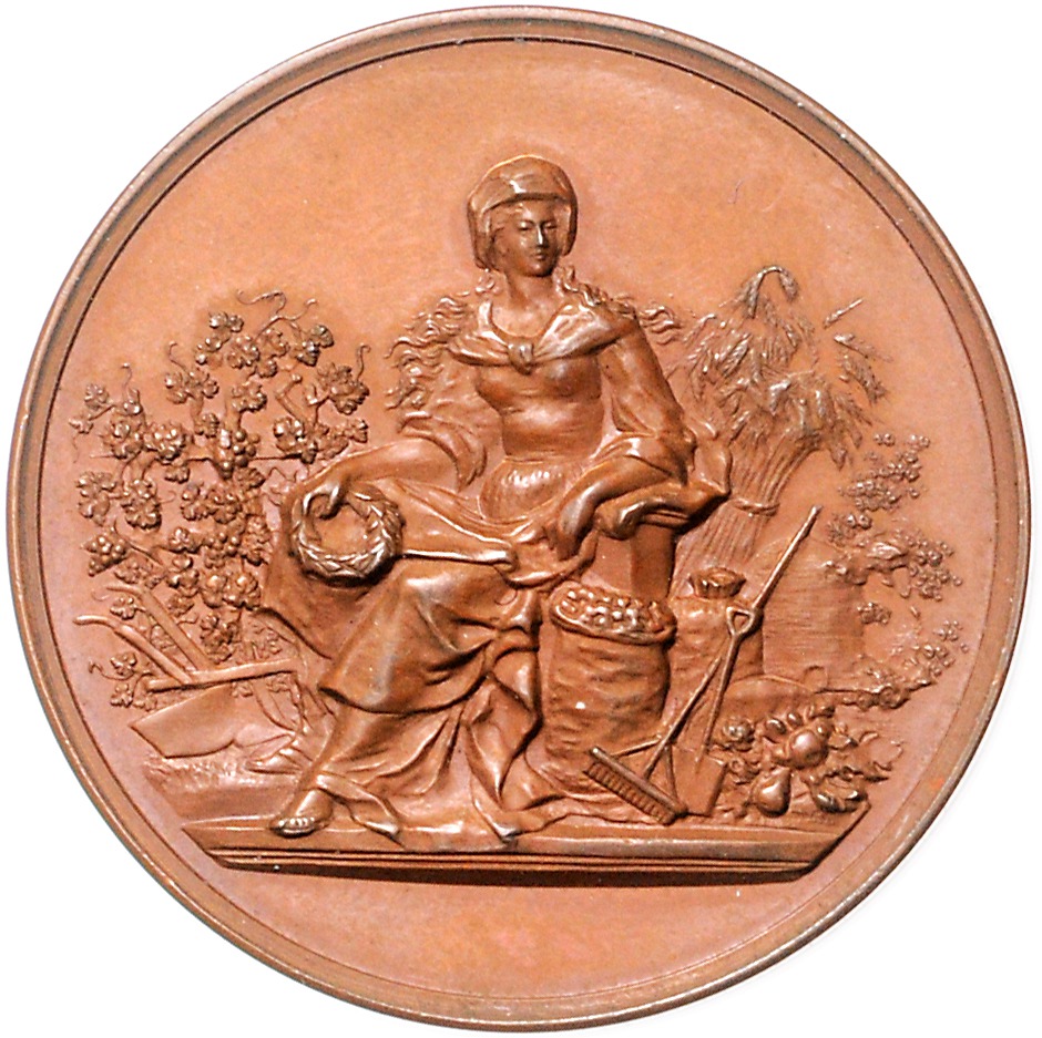 Lot von 2 Bronzemedaillen o.J. (v. Legastelois) mit leerem Gravurfeld, i.Rd: Füllhorn BRONZE (50,0mm 64,04g) | 1903 (unsign.) auf die landwirtschaftliche Ausstellung in St. Wendel (40,3mm 28,07g). vz-st