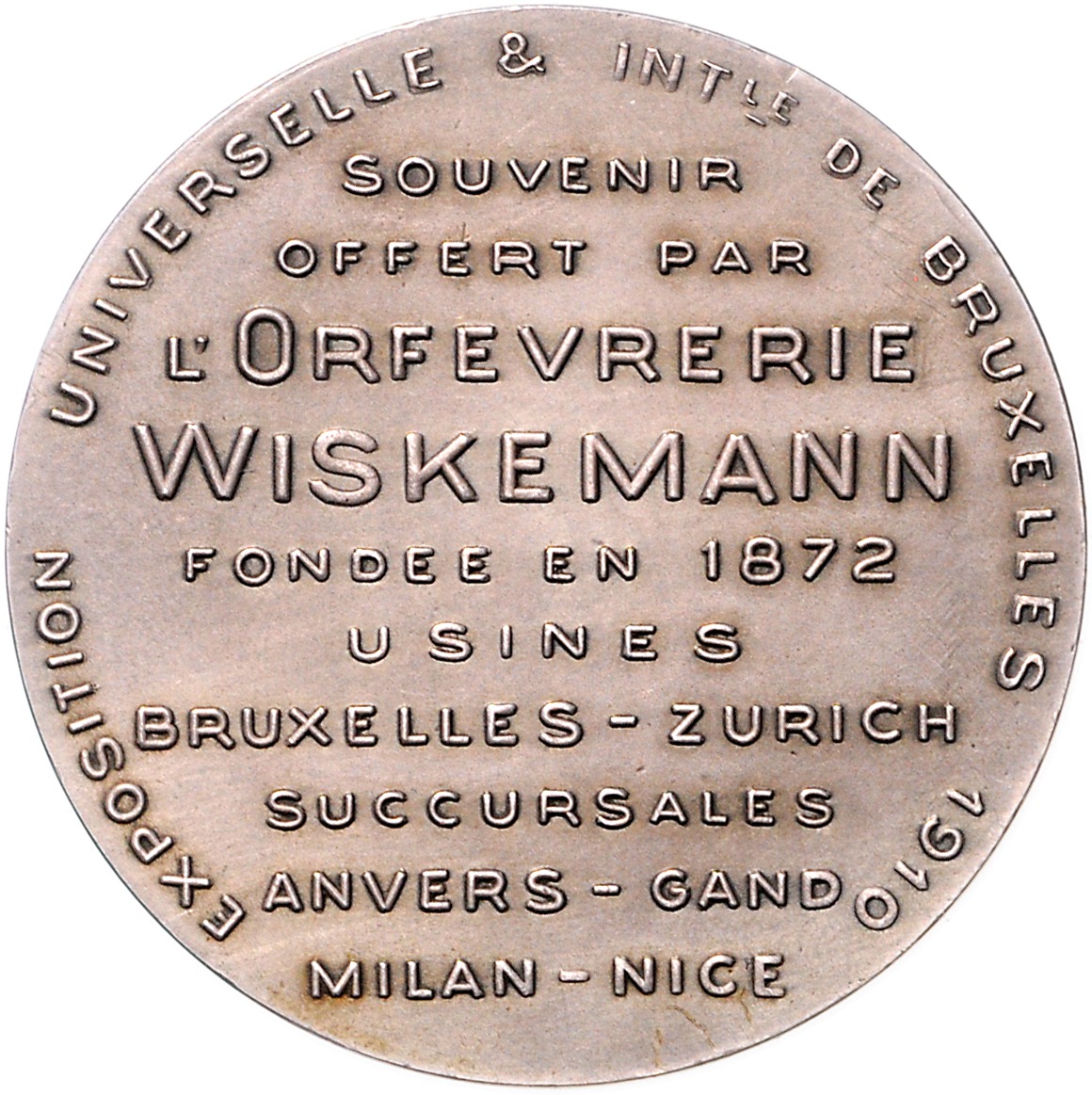 Lot von 2 Stücken: Versilberte Bronzemedaille 1895 (v. Rivet) Prämie der XIII. Ausstellung in Bordeaux, mit leerem Gravurfeld, i.Rd: Füllhorn BRONZE (44,4mm 45,27g) | Versilberte Bronzemedaille 1910 (unsign.) Souvenir der Besteckfirma Wiskemann in Brüssel, anlässlich der Weltausstellung (49,8mm 47,69g). vz
