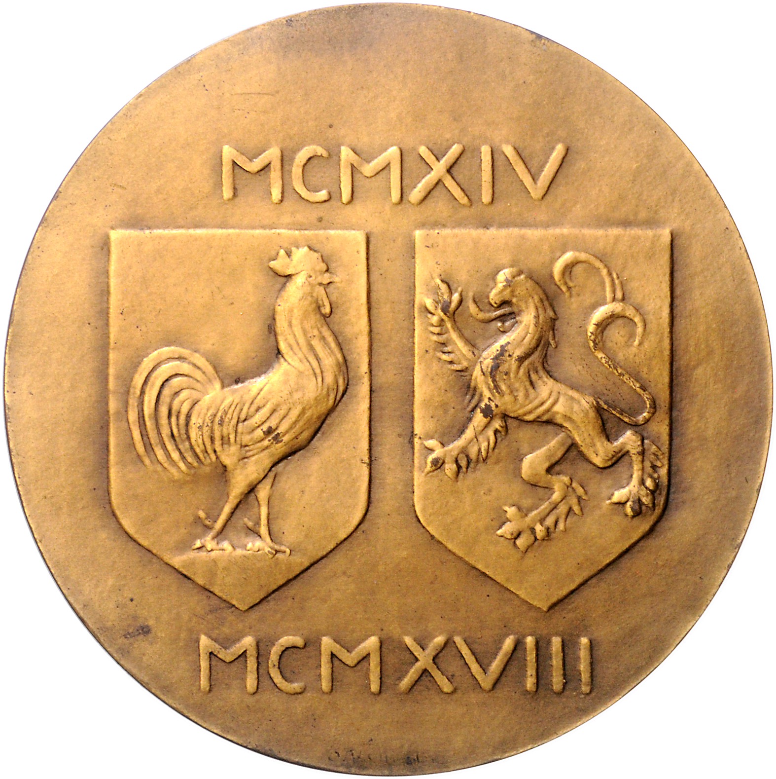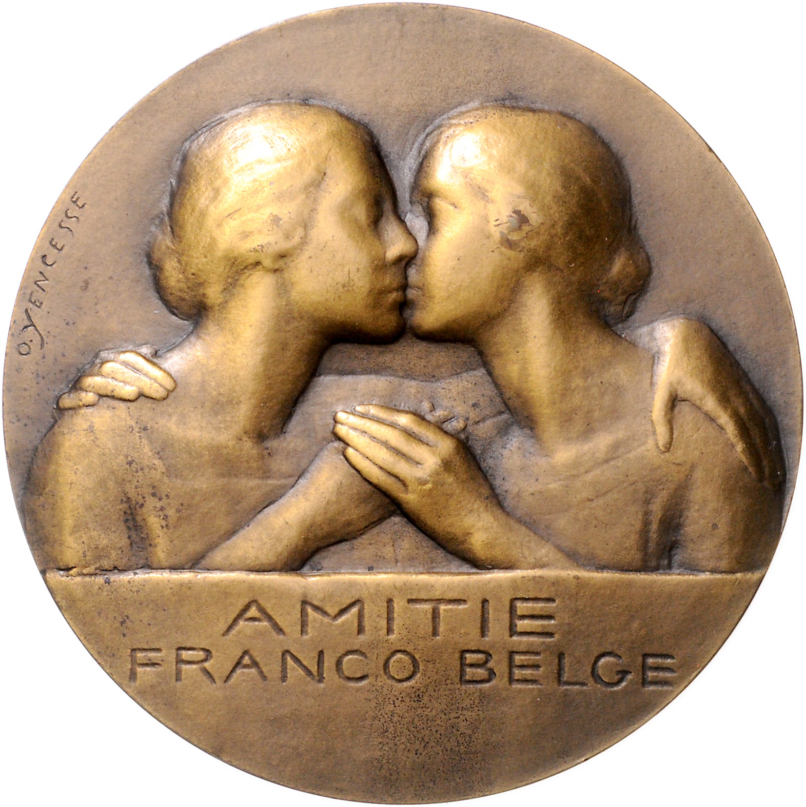 Bronzemedaille o.J. (v. Yencesse) AMITIE FRANCO BELGE / MCMXIV - MCMXVIII. 67,8 mm, 142,91 g. vz