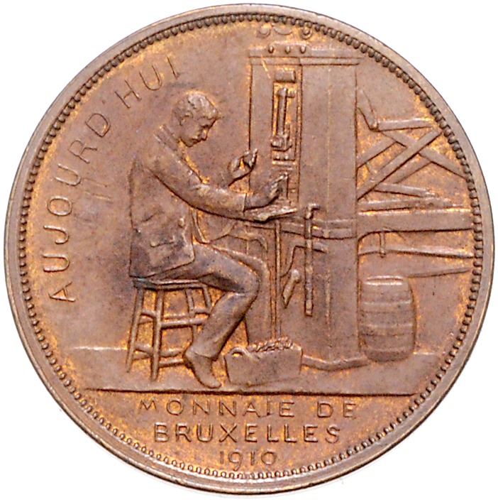 Lot von 2 Stücken: Bronzemedaille 1910 (v. Michaux) Souvenir der Münze Brüssel anlässlich der Weltausstellung. 30,2mm 10,27g, etwas fleckig | Messingmedaille 1935 (unsign.) Souvenir der Münze Brüssel anlässlich der Weltausstellung. 31,0mm 12,89g, fleckige Patina. vz