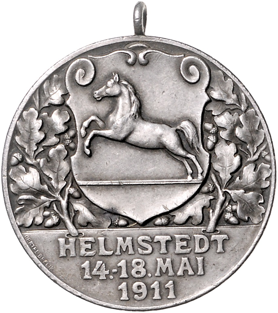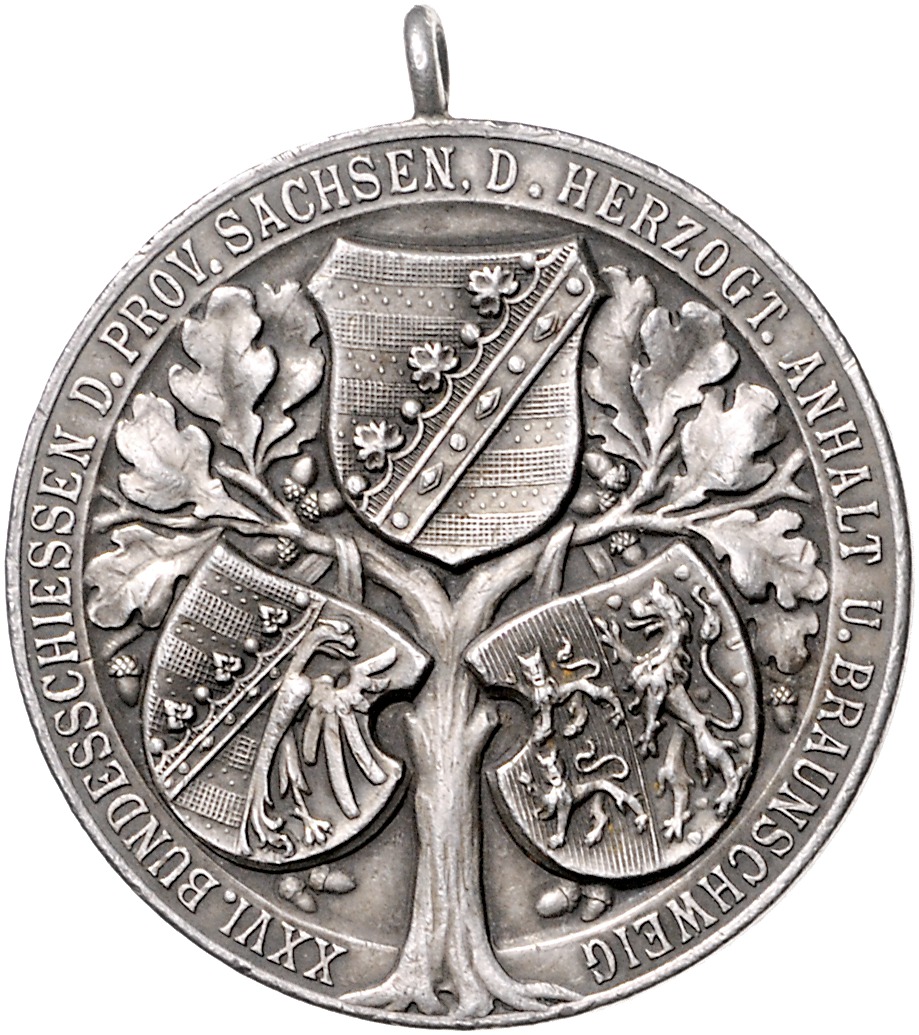 Silbermedaille 1911 (v. Oertel) auf das XXVI Bundesschießen der Provinz Sachsen, der Herzogtümer Anhalt und Braunschweig, i.Rd: SILBER 990. Slg. Peltzer 1302. mit Öse 39,5 mm, 25,17 g. ss-vz