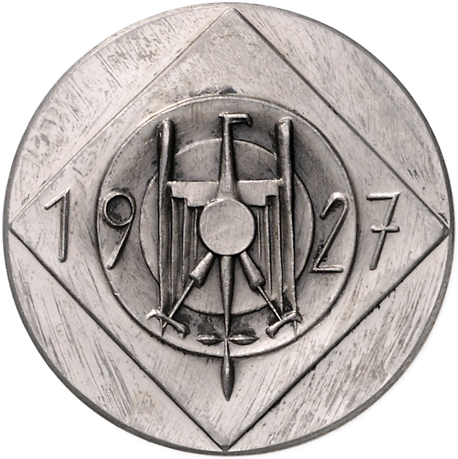 Lot von 2 Stücken: Silbermedaille 1906 (v. Roemer) auf das XV. Deutsche Bundesschießen. 38,0mm 30,05g | Silbermedaille 1927 (unsign.) auf das XVIII. Deutsche Bundesschießen, i.Rd: CARL POELLATH SCHROBENHAUSEN 950. 40,5mm 30,77g, ungleichmäßige Patina. Steulmann XV 2, XVIII 2, Slg. Peltzer 1489. f.vz und vz
