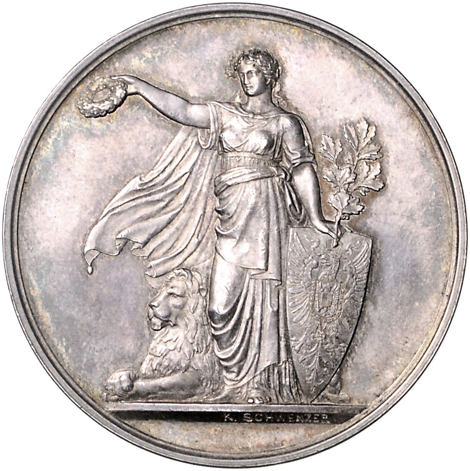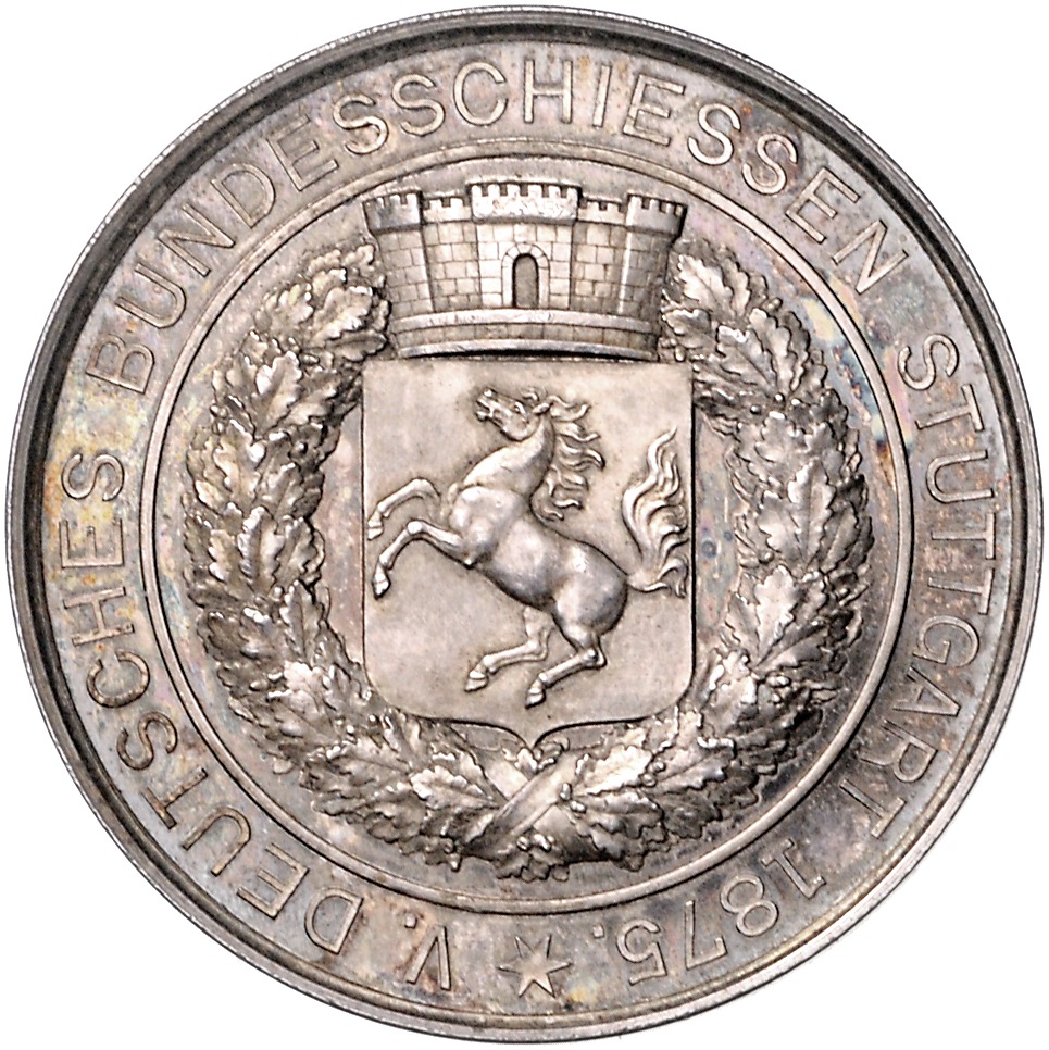 Silbermedaille 1875 (v. Schwenzer) auf das V. Deutsche Bundesschießen. Steulmann V1, Slg. Peltzer 1679. f. Kr. 41,4 mm, 23,77 g. vz