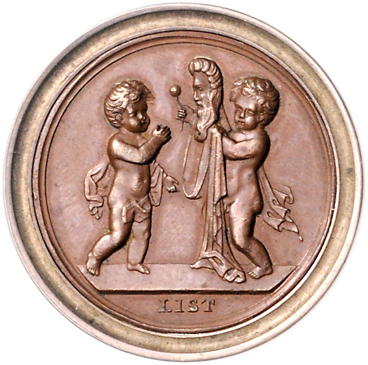 Lot von 3 Stücken: Whistmarke in Bronze mit Messingring o.J. NACHLAESSIGKEIT / 1.2 TRIPLE | VORSICHT / 3.4 DOUBLE | LIST / 5.6.7.8.9 SIMPLE. alle je 30,8mm 10,0g. vz