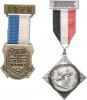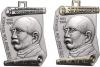 | Lot von 2 Stücken : Tragbare Wanderplakette in Form einer Schriftrolle, in der Mitte barhäuptige Büste in Zivil nach links, Umschrift OTTO FÜRST VON BISMARCK 1815-1898, die gerollten Teile mit Inschrift 4. INTERNATIONALER VOLKSWANDERTAG - DRK LINGENFELD. a) Bronze versilbert und teilvergoldet | b) Bronze, versilbert je ca. 43,5x56,5mm 50,40 g. prfr. |