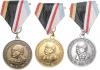 | Lot von 6 Medaillen des Bismarckbundes. Barhäuptiges Brustbild in Zivil nach links, Umschrift REICHSKANZLER OTTO FÜRST VON BISMARCK Eichenblatt 1871 Eichenblatt / Im Strichkreis das geschweifte Wappen Bismarcks, Umschrift EINIGKEIT UND RECHT UND FREIHEIT - DER BISMARCKBUND. a+b) Messing, vergoldet an mehrfarbigem Dreiecksband mit Nadel 35,9mm 22,08g und an hellblau-weißem Trageband mit Nadel 14,8mm 3,19g | c+d) Messing, versilbert an mehrfarbigem Dreiecksband mit Nadel 35,9mm 23,0g und an hellblau-weißem Trageband mit langer Nadel 14,8mm 4,0g | e+f) Messing, patiniert an mehrfarbigem Dreiecksband mit Nadel 35,9mm 25,56mm und an hellblau-weißem Trageband mit langer Nadel 14,8mm 3,97g. prfr. |