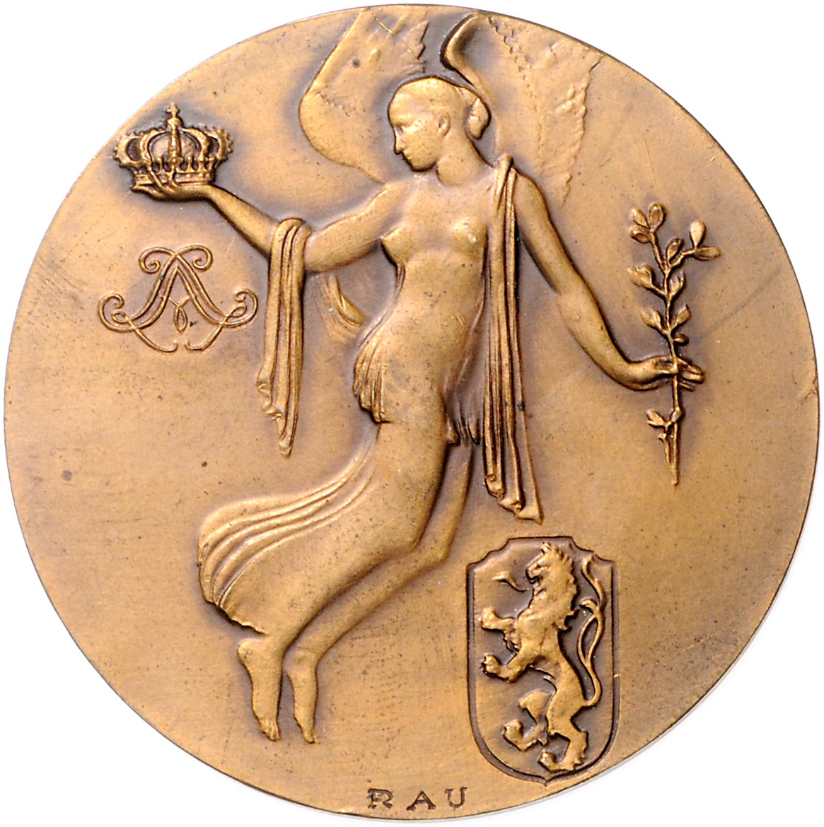 Lot von 3 Stücken: Bronzemedaille o.J. (sign. R.B.B.) Prämie des Department de la Seine, mit leerer Gravurtafel, i.Rd: Füllhorn BRONZE (50,3mm 67,06g) | Bronzemedaille 1930 (v. Rau) auf das 100-jährige Bestehen des Königreiches Belgien (50,1mm 47,09g) | Bronzemedaille o.J. (unsign.) Prämie der Gemeinde Beveren-Waes (47,9mm 44,27g). vz und besser