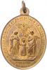 Lot von 2 Stücken: Bronzemedaille 1912 (v. M. Six) auf den 23. Eucharistischen Weltkongress in Wien, i.Rd: Kleeblatt-Punze. 50,4mm 45,45g | Ovale Messingmedaille o.J. (19. Jh., unsign.) Wallfahrtsmedaille der Erzbruderschaft der Heiligen Familie. 30x41mm 12,03g, mit Öse. vz