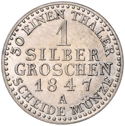 Paul Alexander Leopold 1820-1851. Silbergroschen 1847. AKS 7, Jaeger 12. winz. Kr. f.st