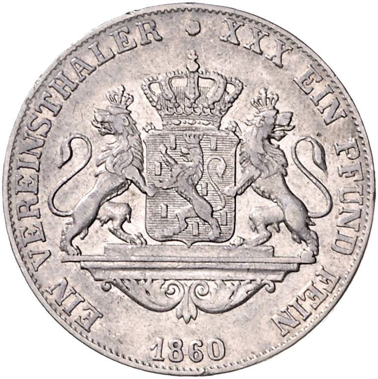 Adolph 1839-1866. Vereinstaler 1860. Kahnt 313, Davenport 747, AKS 63, Thun 234. ss