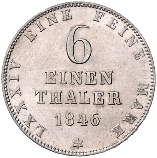 Paul Friedrich August 1829-1853. 1/6 Taler 1846. AKS 10, Jaeger 42. vz-st