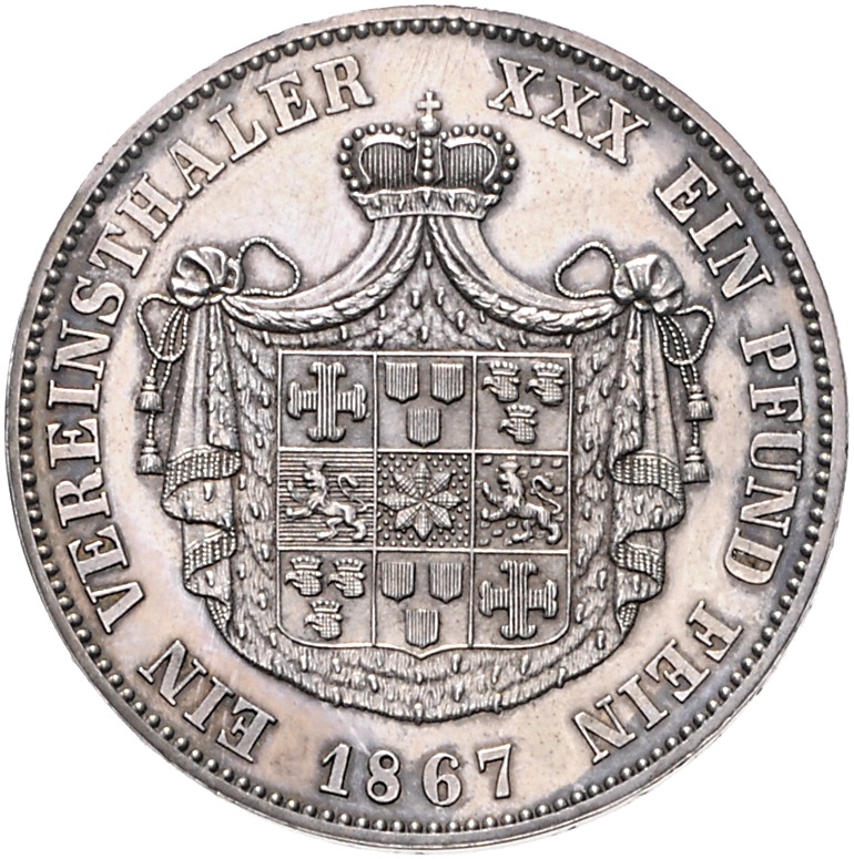 Georg Victor 1852-1893. Vereinstaler 1867 A. Kahnt 551, Davenport 929, AKS 45, Thun 410. Rs.: min. feine Kratzer. st