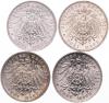Friedrich August III. 1904-1918. Lot von 4 Stücken: 3 Mark 1909, 1910, 1911 und 1912. Jaeger 135. vz+