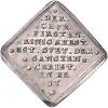 Ferdinand II. 1619-1637. Silberklippe o.J. (1619) auf seine Krönung in Frankfurt. Exemplar der Slg. Willy Fuchs (Peus 395) und der Slg. des Marquis de Hohenkubin (Lanz, Graz, 7.12.1973, Nr. 307). J.u.F. 1879. mit dem Originalzettel der Slg. Fuchs, 28x28mm 4,00 g. stempelfrisches Prachtexemplar