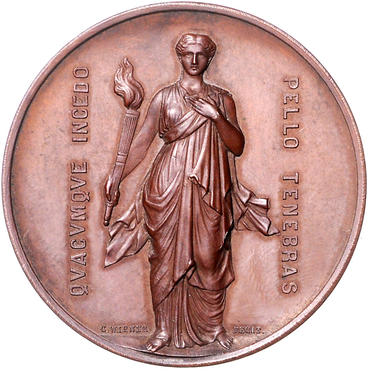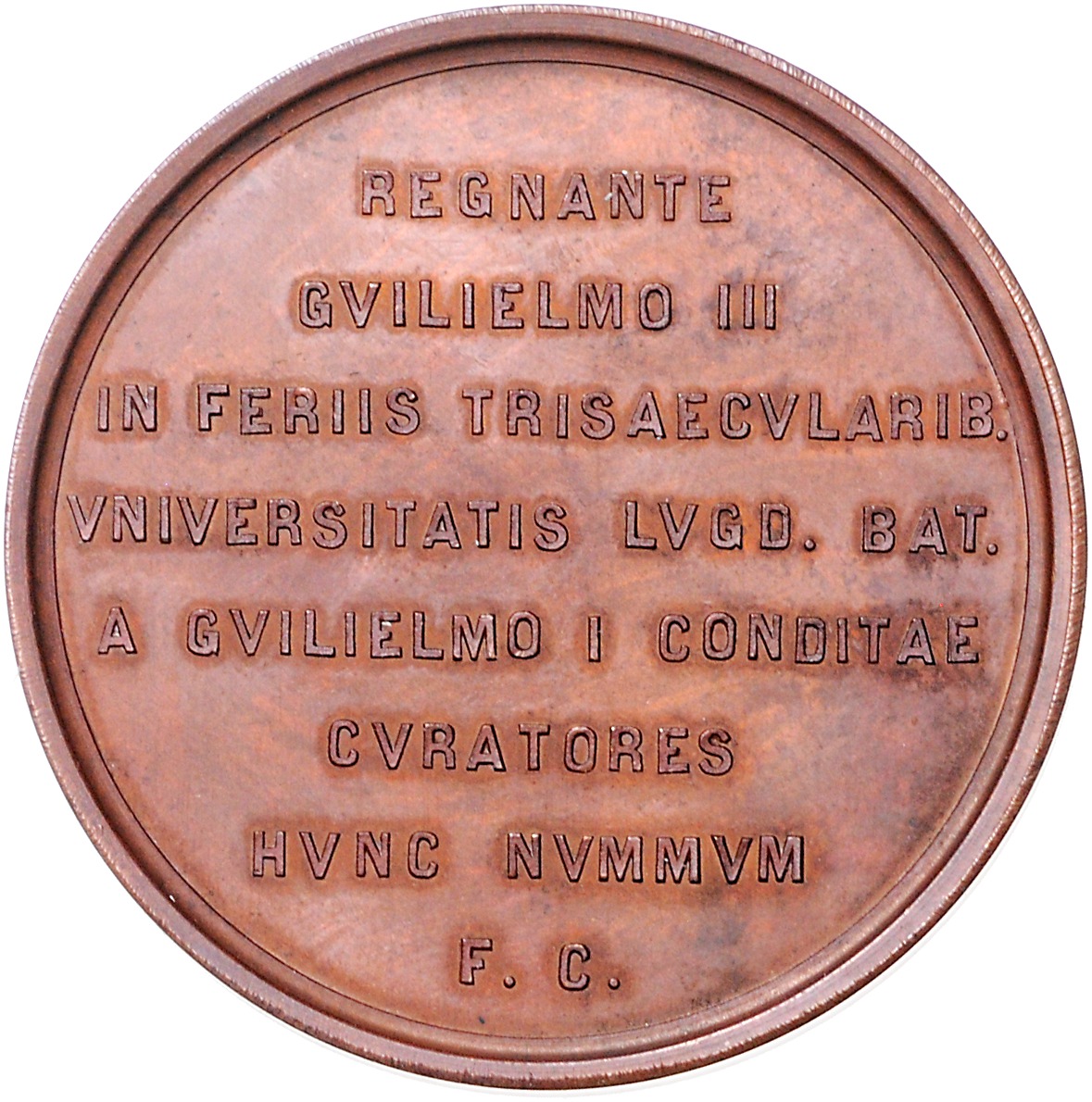 Bronzemedaille 1875 (v. Charles Wiener) auf die 300-Jahrfeier der Hochschule Leiden/Holland. Wurzbach 4923. 50,8 mm, 55,38 g. vz