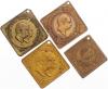 | Albert 1873-1902. Lot von 4 Bronzeklippen auf den König / Mit Gott für König und Vaterland | auf das XII. Mitteldeutsche Bundesschießen 1889 in Plauen | 2x verschiedene Motive auf das Wettiner Jubeljahr 1889. alle gelocht. ss und besser |