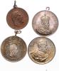 | Friedrich III. 1888. Lot von 4 kleinen Medaillen auf seinen Tod: Silbermedaille (v. Oertel) `Heimgegangen am 15. Juni 1888 dem 99. Tage seiner Regierung | Bronzemedaille (v. Lauer) `Lerne leiden ohne zu klagen` | 2x versilberte Medaille (unsign.) `Ewig unvergesslich deutschen Herzen` und `Lerne zu leiden ohne zu klagen`. 3x mit Öse. vz und besser |