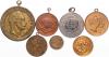 | Wilhelm II. 1888-1918. Lot von 7 Stücken: Bronzemedaille o.J. `Ich will meines Staates erster Diener sein` und dazu 6 Medaillen 1889 auf den Friedensbund der Mittelmächte. 5x mit Öse, in verschiedenen Größen und Metallen. ss bis vz |