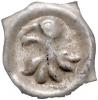 | Einseitiger vierzipfliger Pfennig (Rappen, nach 1377) Rabenkopf nach links. 0,33 g. ss |