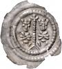 | Friedrich II. 1215-1250. Brakteat o.J. Sitzendes Kaiserpaar von vorn, dazwischen Stab. Slg. Bonhoff 1203, Berger -. Rand etwas ausgebrochen 0,38 g. ss |
