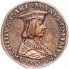 | Maximilian I. 1486-1508-1519. 1/2 Schauguldiner 1518 St. Veit, alte Bronze-Sammleranfertigung, schwacher Rest einer Tuschezahl, Variante der Umschrift: CARI: (statt CAR). Ähnliche Stücke werden teilweise in Auktionen als `Probe` beschrieben, was wohl eher unwahrscheinlich ist. Egg S. 196 Nr. 34 var., Probszt 3 var. alter Guss. ss |