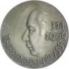 | 42660 | - Personen - Heuss, Theodor 1884-1963 Silbermedaille 1959 mattiert auf seine Amtszeit als Bundespräsident, i.Rd: Halbmond, Krone 1000 40,3mm 25,1g vz-st | 40,00 € |