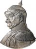 | Einseitige Zinngussplakette o.J. (unsign.) Ausgeschnittenes behelmtes Brustbild in Uniform nach links. Bennert -, Slg. Böttcher -. versilbert, Rep. gestopftes Loch, 246x183mm 562,00 g. vz |