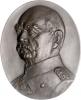 | Ovale, einseitige Bronzeplakette o.J. (unsign.) Barhäuptiges Brustbild in Uniform mit Orden nach links. Bennert -, Slg. Böttcher -. Rs. mit nachträglich angebrachter Aufhängevorrichtung, 170x134 mm 368,00 g. vz |