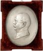 | Einseitige versilberte Bronzeplakette o.J. (v. Rasmussen) Barhäuptiges Brustbild in Uniform nach links. Bennert -, Slg. Böttcher -, Slg. Richter 4933. Oval, 238x195mm, im samtbespannten Rahmen, an diesem Aufhängevorrichtung (290x250mm) 699,00 g. vz |