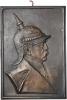| Einseitige Bronzegussplakette o.J. (unsign.) In einem erhabenen Rahmen behelmtes Brustbild in Uniform mit Orden nach rechts. Bennert -, Slg. Böttcher -. teilweise verkupfert, oben kleine Halteschraube, 272x189mm 1.680,00 g. vz |