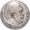 | Silbermedaille o.J. (v. Holl) Barhäuptiger Kopf nach rechts, Umschrift OTTO VON BISMARCK / Stilisierter Adler von vorn, den Kopf nach links gewandt, in poliertem quadratischen Feld mit angefasten Ecken auf aufgerautem Feld, i. Rd: Dreieck Halbmond 1000. oxidiert 50,5 mm, 47,44 g. st |