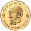 | Vergoldete Medaille o.J. Barhäuptiger Kopf mit Uniformkragen, Umschrift BISMARCK, mit Signatur F.H. / Inschrift NACHPRÄGUNG MIT ORIGINALSTEMPEL AUS ANLASS DES 175. GEBURTSTAGES FÜRST OTTO VON BISMARCK 1815 - 1898, Ranke und Münzzeichen, am Rand Perlkreis. AFA 250 (Vs.) 35,0 mm, 20,61 g. prfr. |