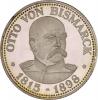 | Silbermedaille 1990 Barhäuptige Büste in Uniform nach rechts, Umschrift OTTO VON BISMARCK * 1815 - 1898 *, am Rand Perlkreis / Reichsadler mit Brustschild, darauf der Bundesadler mit Jahreszahl 1990, Umschrift DEUTSCHE STAATSMÄNNER, am Rand Perlkreis, mit Punze 999. glatter Rand 35,2 mm, 14,77 g. PP |