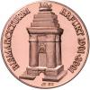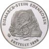 | Silbermedaille 1999 Der Bismarckstein, darauf der barhäuptige Kopf mit Kragenansatz in Zivil nach links, schräg darunter Lorbeerzweig, darauf das Familienwappen, daneben (nicht leserliche) Inschrift DEM EINIGER DER DEUTSCHEN - DER SÜDWESTDEUTSCHE LANDESVERBAND ALTER HERREN - DES AKADEMISCHEN TURNBUNDES - 2. SEPTBR. 1898, Umschrift BISMARCK-STEIN EDENKOBEN ERSTELLT 1898, mit Punze 999 / Denkmal auf dem Werderberg Umschrift 100 JAHRE SIEGES- U. FRIEDENSDENKMAL BEI EDENKOBEN `b7 1899-1999 `b7. 35,0 mm, 15,05 g. PP |