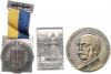 | Lot von 6 Wanderorden : a) Weißmetallmedaille mit verziertem Messingrand, darauf zwei Läufer, Umschrift ALTENKIRCHENER SPORTGEMEINSCHAFT 1883 `b7 31.5.1971 `b7 / Bismarckturm, Umschrift I. INT. VOLKSLAUF ALTENKIRCHEN `b7 RUND UM DEN BISMARCKTURM `b7, an blau-gelben Band mit Nadel 26,5mm 10,16g | b) Rautenförmige Kupfermedaille in versilbertem Strahlenkranz, Bismarckturm auf dem Berliner Platz in Aumühle-Hofriede, links das Wappen des W.R.S.C 1906, rechts das Wappen des TuS Dassendorf von 1948, an schwarz-gelbem Band mit Haltespange, Inschrift 3. INT. SACHSENWALDVOLKSLAUF AM 8.5.1975, rückseitig Nadel und Hersteller Reu & Co., Heubach, Württ. 42,5x61,0mm 37,51g | c) gleiches Stück in versilbertem Messing mit vergoldetem Strahlenkranz, Haltespange vergoldet 42,5x61,0mm 35,45g | d) Versilberte Bronzemedaille mit vergoldeten Strahlenkranzecken, Bismarckturm auf einem Vorberg des Goldberges in Hagen, Modell `Götterdämmerung`, Umschrift 4. INT. HAGENER VOLKSLAUF - BISMARCKTURM 1971 - / Wappen und Umschrift SPORTCLUB CONCORDIA `b7 HAGEN 19678 e.V. `b7, an blau-gelbem Band mit Haltespange 1971, rückseitig Nadel und Hersteller Fritz Reu & Co., 7072 Heubach, Württ. 45x47,5mm 46,15g | e) Klippenförmige Weißmetallmedaille mit vergoldetem Strahlenkranz, Bismarckturm auf dem Scheersbeg umgeben von Bäumen, Umschrift 2. INTERNATIONALER SCHEERSBERG WANDERTAG - BISMARCKTURM, an schwarz-rotem Band mit Haltespange 1975, rückseitig Nadel und Hersteller Heinrich Kissing 575 Menden 45,5x50,0mm 46,36g | f) Vergoldete Bronzemedaille mit Strahlenkranz, Bismarckturm auf der Seilerkuppe in Iserlohn, Umschrift VOLKSLAUF 1971 - BISMARCKTURM / Stadtwappen, Umschrift 2. INTERNATIONALER VOLKSLAUF RUND UM DEN SEILERSEE ISERLOHN - TUS 1846 SPORTAMT, an weiß-rot-gelbem Band mit Haltespange 1971, rückseitig Nadel und Hersteller Fritz Reu & Co., 7072 Heubach Württ. 39,5x39,5mm 32,31g. prfr. |