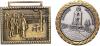 | Lot von 2 Stücken : Tragbare Wanderplakette in Form einer Schriftrolle, in der Mitte barhäuptige Büste in Zivil nach links, Umschrift OTTO FÜRST VON BISMARCK 1815-1898, die gerollten Teile mit Inschrift 4. INTERNATIONALER VOLKSWANDERTAG - DRK LINGENFELD. a) Bronze versilbert und teilvergoldet | b) Bronze, versilbert je ca. 43,5x56,5mm 50,40 g. prfr. |